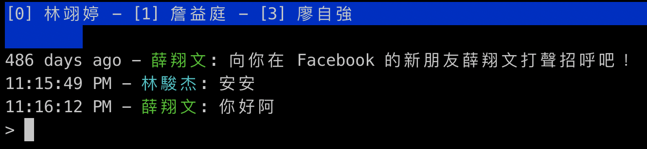 今天在 GitHub 上發現一個很有趣的專案,叫做 fb-messenger-cli,可以在 terminal 上操作 facebook messenger,看起來很像在工作,又能偷偷跟朋友聊天 ( 誤 )。